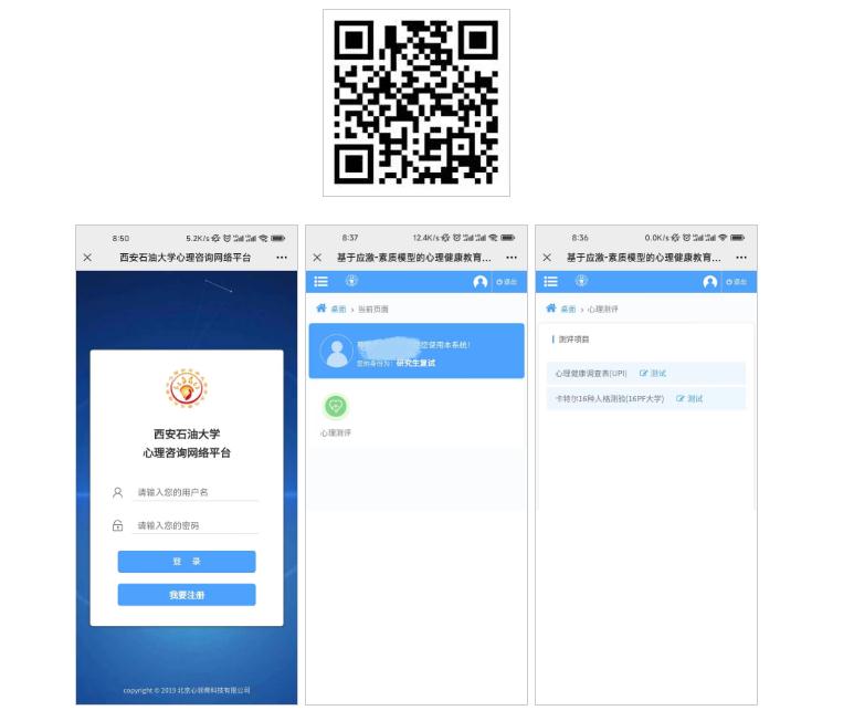 2.考生可扫描下方二维码,进入“2026世界杯官方合作网站心理咨询网络平台 ”,输入账号及密码(均为考生准考证号),点击“心理测评”,完成心理健康测试(两部分)。