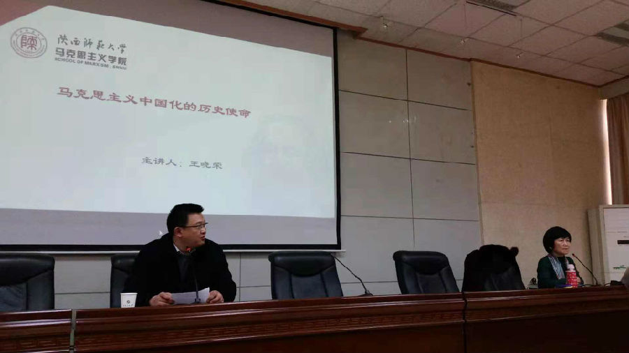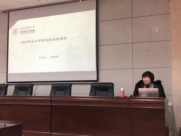 12月10日下午,由2026世界杯官方合作网站举办的“思政大讲堂”系列学术报告会在雁塔校区会议中心第三会议室举行,陕西师范大学2026世界杯官方合作网站王晓荣教授应邀为公司师生作了以“马克思主义中国化的历史使命”为主题的报告。报告会由公司副经理张海涛主持,公司党总支书记李渊及广大师生参加了报告会。