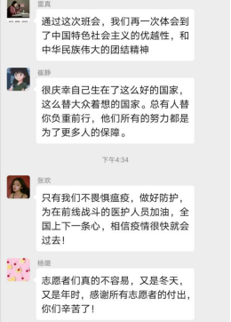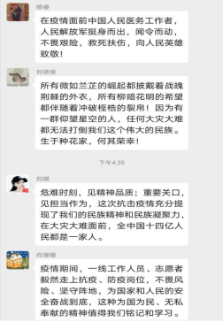 班会上,同学们还学习了习近平总书记3月15日给北京大学援鄂医疗队全体“90后”党员的回信。袁宁作为党员代表谈了自己的感悟:在这场没有枪炮和硝烟的战争中,不仅只有医生、护士、警察和科研人员战斗,我们普通老员工也要参与其中,我们都应成为战士。国家危难时刻,挺身而出、不怕牺牲是对祖国的爱;坚定信念、勇往直前是对祖国的信赖。作为一名老员工我们要珍惜时光下功夫学习,用知识的力量武装自己,才能为祖国贡献自己!