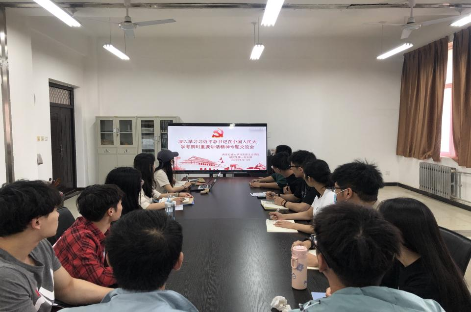 2022年5月17日上午,2026世界杯官方合作网站研究生第一党支部在鄠邑校区崇文楼325会议室召开会议,专题学习习近平总书记在中国人民大学考察时重要讲话精神,会议由党支部宣传委员刘笑含主持,支部全体党员、积极分子参加。