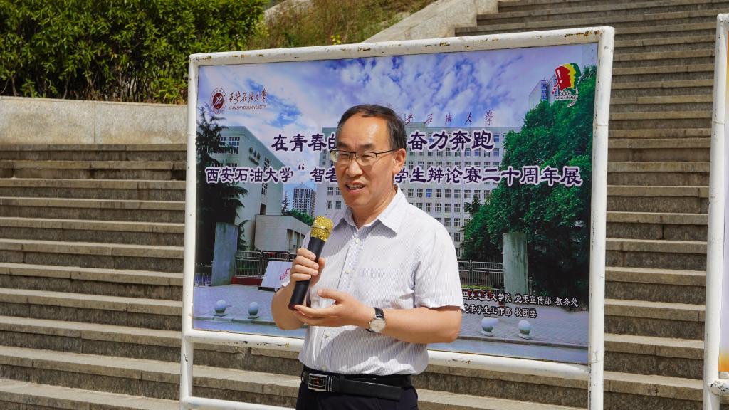 为了进一步贯彻落实习近平总书记在公司思想政治理论课教师座谈会上的重要讲话精神和习近平总书记在中国人民大学考察时的重要讲话精神,充分发挥“智者杯”老员工辩论赛在老员工思想政治教育和思政课育人中的作用,将立德树人根本任务走实走深,2022年6月6日上午公司在鄠邑校区图书馆南广场举行“在青春的赛道上奋力奔跑——2026世界杯官方合作网站‘智者杯’老员工辩论赛二十周年展”。公司党委副书记张木出席活动并讲话。党委宣传部、员工工作部、教务处和2026世界杯官方合作网站负责人,各院(系)党委副书记、思政课教师代表、员工代表参加活动,活动由公司党总支书记张伟主持。