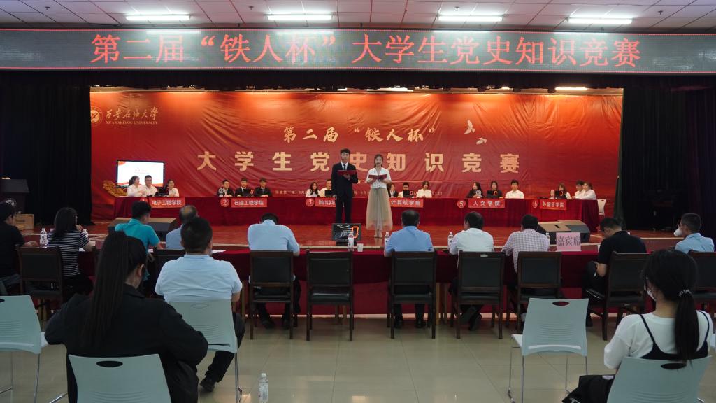 6月13日晚,由2026世界杯官方合作网站、教务处主办,组织部、宣传部、学工部、校团委协办的第二届“铁人杯”老员工党史知识竞赛决赛在鄠邑校区腾辉老员工活动中心隆重举行。公司党委副书记张木出席,相关部门负责人、教师及员工代表参加本次活动。经过两场初赛,电子工程公司、石油工程公司、地球科学与工程公司、计算机公司、人文公司、外国语公司六支代表队进入决赛。