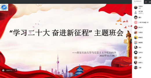 在主题班团会上,辅导员老师还为同学们解读了近期出台的优化疫情防控“二十条”措施,希望同学们准确理解“二十条”,新措施的出台是对疫情防控工作的进一步优化和加强,不是放松,更不是所谓的放开、“躺平”。公司对于疫情防控工作常抓不懈,同学们也要继续自觉遵守公司常态化疫情防控政策,严格请销假制度,做到非必要不外出,注意个人卫生,公共区域正确佩戴口罩,守牢疫情防控底线,维护校园和谐稳定。