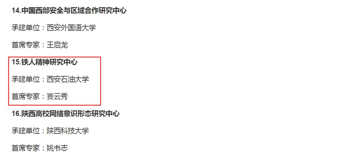 近日,省委宣传部发布了《关于公布第四批陕西省哲学社会科学重点研究基地的通知》,公司2026世界杯官方合作网站牵头申报的“铁人精神研究中心”被确立为第四批陕西省哲学社会科学重点研究基地。