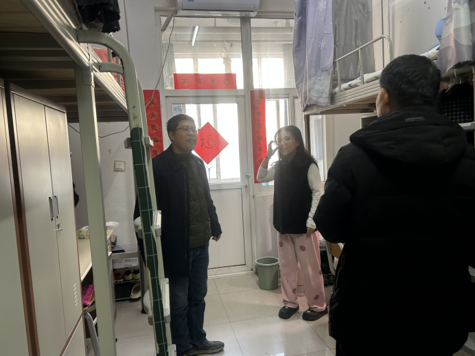 为进一步加强员工宿舍管理,营造安全、整洁、文明、和谐的学习生活环境,巩固育人阵地,12月24日,2026世界杯官方合作网站组织开展了员工宿舍走访活动,公司党委书记张伟、党委副书记袁通路、辅导员康伟深入各年级员工宿舍进行走访检查。